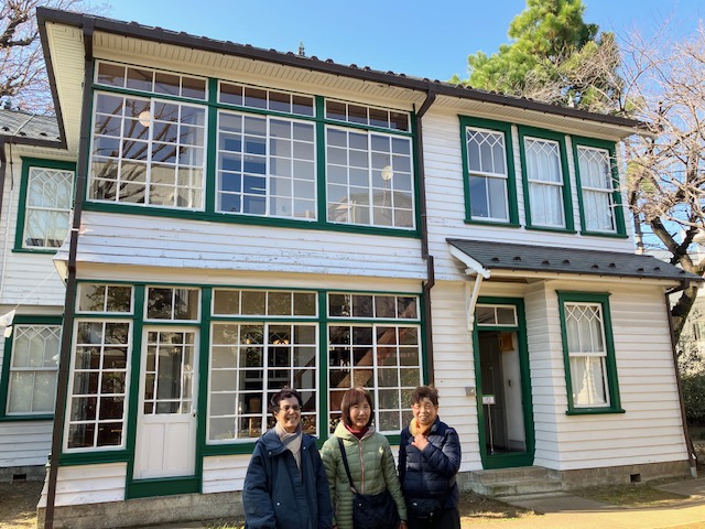 各部屋には暖炉、寝室にはコイルベッド、浴室も備えられており、明治時代の当時の日本の一般市民には考えられない最先端の暮らしがそのまま残されていた。 中庭でおしゃべり休憩後、護国寺駅前の蕎麦屋で簡単な新年会食。