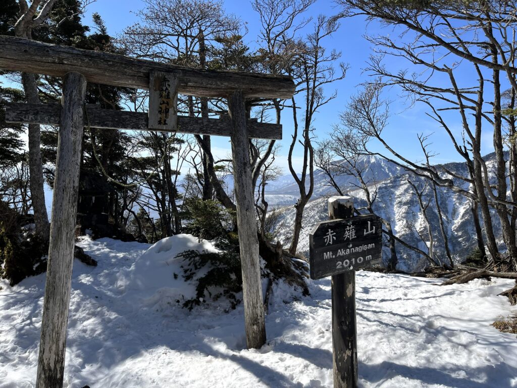 スノーシュー体験は参加者が無くなったので中止として、個人山行で雪山ハイキングを赤薙山で行いました。Kさんが同行してくれました。女峰山手前まで行けたらと思いましたが、全然でした。やはり常に歩いていないと体力・筋力・気力が…それにしても良い天気でした。雪が随分少なかったですが、楽しい雪山ハイキングになりました。 記:萬代