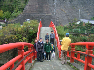 養老渓谷駅前について、記念写真。 |