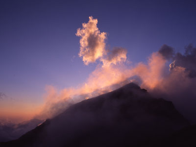 上空の雲に唐松岳の影が映った珍しい写真 |