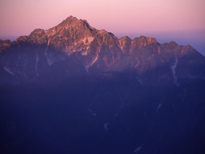 夕空にシルエットで浮かび上がる剣立山連峰 |