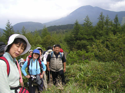 2日目、ヤナギランの咲く登山道を歩く。 |