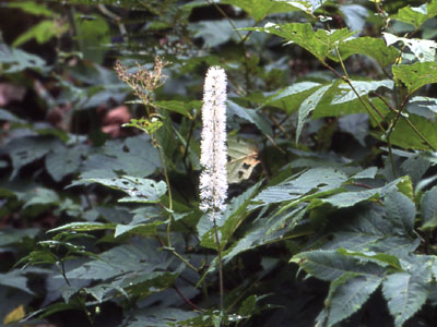 | 遊仙閣の裏手に苗場山の山頂標識がある。 |
