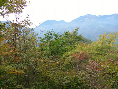 黄色みを帯びてきた木の葉の下を楽しく歩く。 |