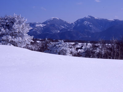 | 根子岳山頂から四阿山方面を望む。トレースはなかった。 |