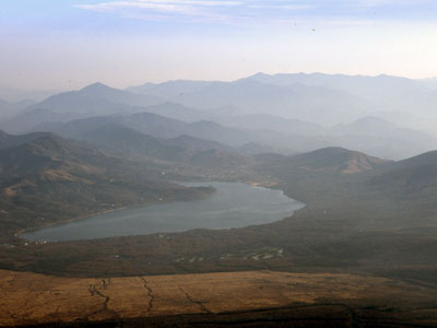 | 山中湖と道志の山々を見下ろす(一番左が御正体山) |