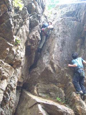 | 女岩南面を登るMさん。もう少し岩から 上体を話した方がベターです。 |