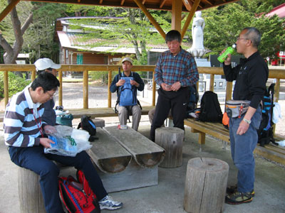 展望台で、Iさんに山の方角を教えるTYさん。 |