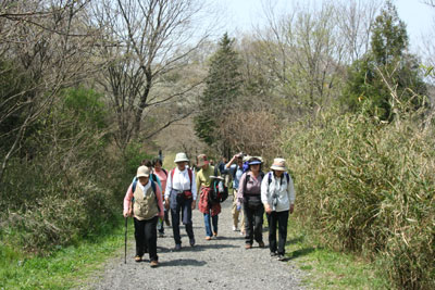 | ぽかぽか陽気のハイキング道を歩く。 |
