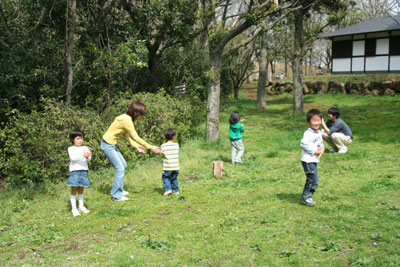 | 竹とんぼをしているとまわりの子どもたちが集まってきた。 |