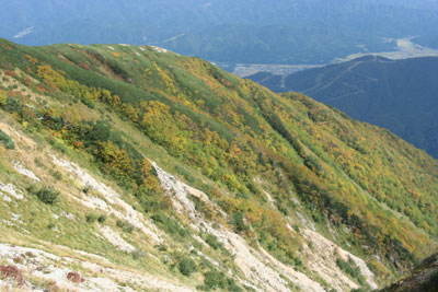 八方尾根の支稜の紅葉 |