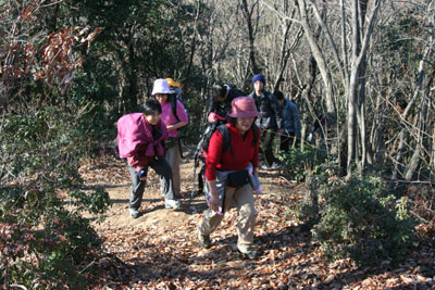 日だまりの山頂でのうどんづくりは楽しい。 |