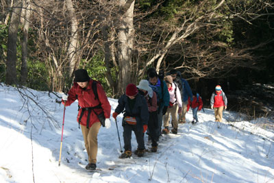 | 大垂水峠から軽アイゼンを付けて登り始める。 |