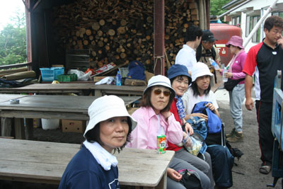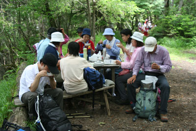 三合目での昼食風景。 |