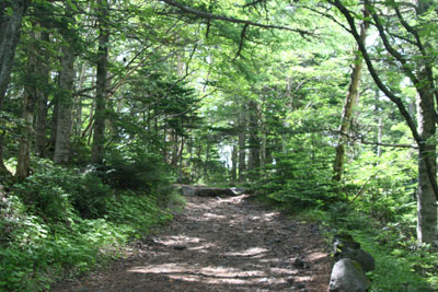 木漏れ日がさわやかな登山道 |