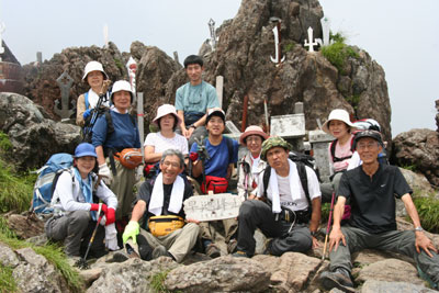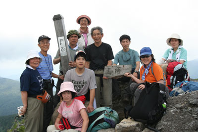 山頂をあとに下山にかかる。(左上が薬師岳山頂) |