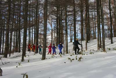 湯ノ丸山登頂を目指して登るメンバー。 |