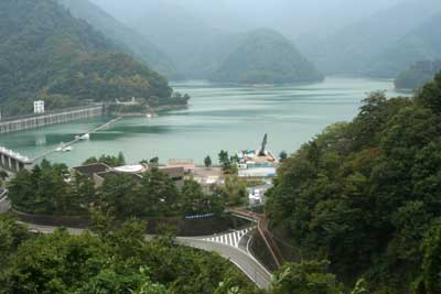 | 登り初めてすぐ眼下に見えた奥多摩湖 |