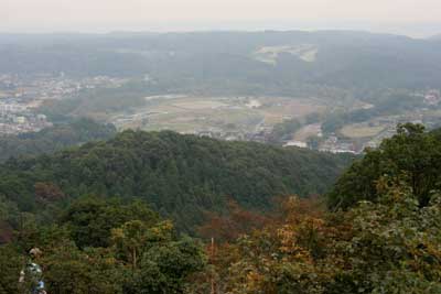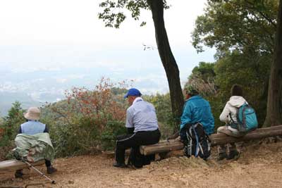 日和田山山頂で下界を見下ろしてひと休み。 |