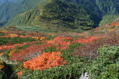 中ノ岳山頂直下の紅葉を広い範囲で捉えると |
