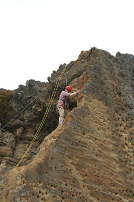 子不知南面のキョンちゃん(5.9)にトライするAさん。 |