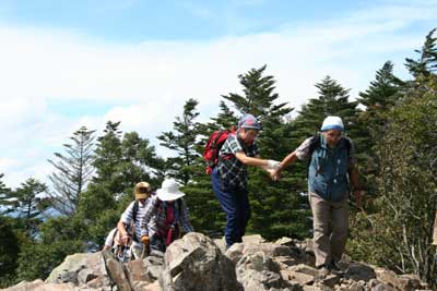 昼食後、雷岩を超えて、大菩薩峠を目指す。 |