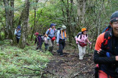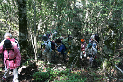 籠坂峠手前の下りは、深いえぐれた道となった。 |