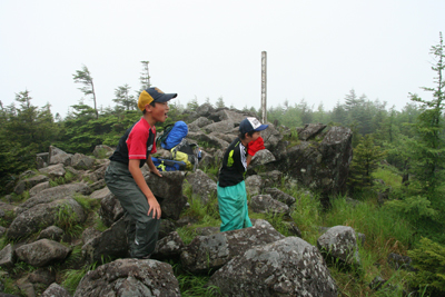 | とにかく、北八ヶ岳は石ゴロの道が多い。 | 縞枯山の山頂に到着。 |