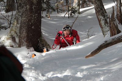 | Mさんをサポートしながら下るUさん。 | ようやく傾斜も落ちてきた。 |