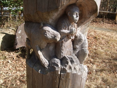 | トーテムポールのような彫刻(Yさん提供) | いろんな彫り物があります(Yさん提供) |