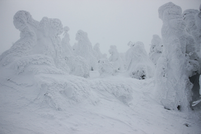 | アオモリトドマツの樹氷(モンスター)が現れた | ザンゲ坂を登ると周囲は一面の樹氷だった |