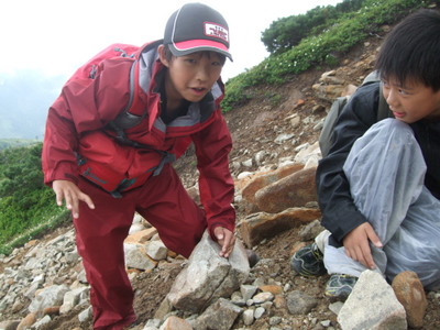 | ほらねというR君。(Yさん撮影) | こらーケルンに登るな!言うことを聞かないS君(Yさん撮影) |