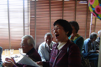 当日は、六つ星山の会から創立者のMさんとベテラン会員のTさん、今年の視覚障害者全国交流登山の寄付金を富士ゼロックス端数クラブに申請していただいたYさん、10年間、毎年寄付をしていただいたKさんをご招待し、旧会員のSさん、Sさん、Kさん、Iさんをお迎えして、正会員33名、賛助員2名の総勢43名で、盛大に行われた。