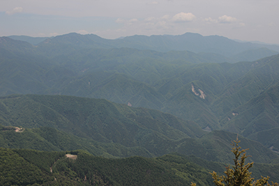 | 山頂から見た北奥千丈岳と国師ヶ岳(右側) 左奥に金峰山の五丈岩が見える |