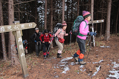 | 落ち葉の多い登山道を下る。 | 浅川峠に到着。 |