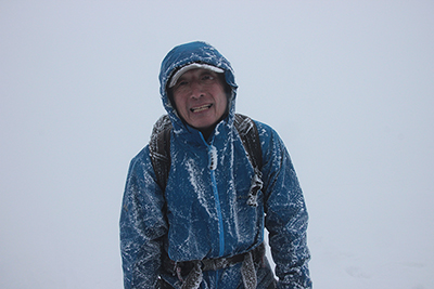 | 葱平付近からは雨になった。 | 稜線に出ると猛烈な強風と小雪が吹き付けるようになる。 |