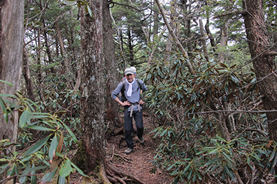 | サオウラ峠から危険なトラバースを終えると、 今度はヤマツツジの道となる。 |