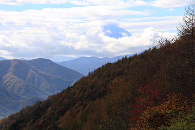 | 柳沢峠から見た富士山 | 柳沢峠から見た南側の紅葉 |