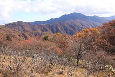 | ハンゼノ頭の北側は紅葉は終わりかけ | 奥秩父方面を見る |
