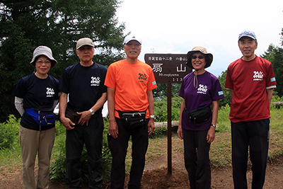 | IさんとKさんのサポートでAさんもがんばっています。 | 山仲間アルプのTシャツを着てきた5人衆です。 |