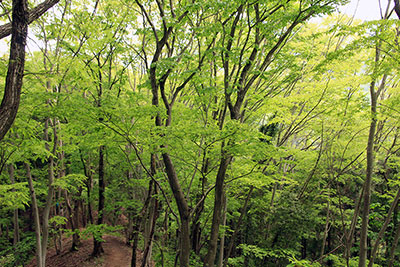 | 護国観音(右上)を背に来た道を引き返す。 | 尾根を行くこのコースには、こんなところも。 |