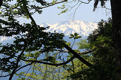 | 顔が写らなかったキビタキ | 樹間から見えた谷川連峰 |