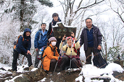 | 仏果山山頂に到着。 | 苦手なくだりもがんばって下るMさん。 |