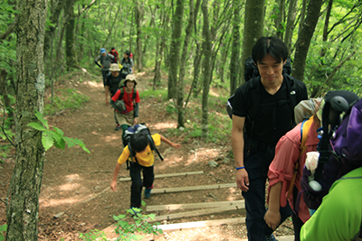 | ムシカリ峠にて。(Kさん撮影) | ムシカリ峠から山頂を目指す。 |