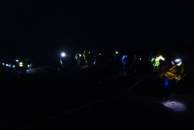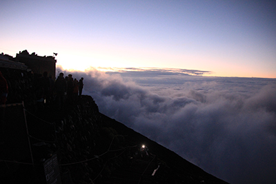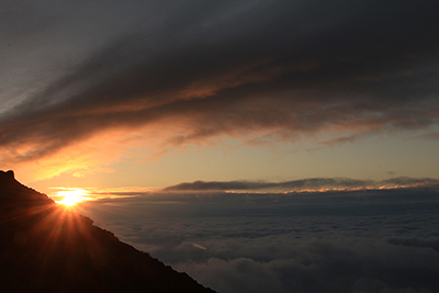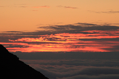 | 2日目はヘッドランプを付けて4時に小屋を後にした。 | 次第に明るくなり雲海が見えるようになってきた。 |