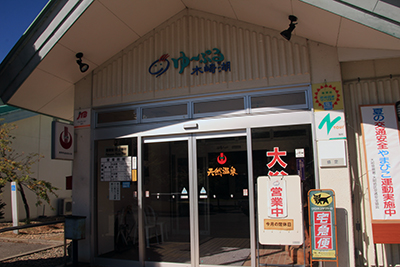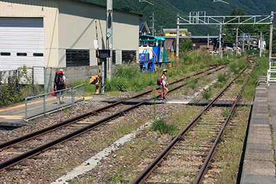 | 汗を流したゆうぷる木崎湖。 | 信濃木崎湖駅の踏切を渡る。 |