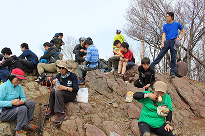 | 山頂でくつろぐ。 | 雲取山山頂にて。 |