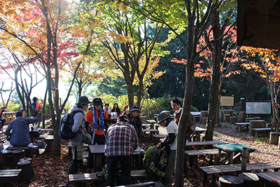 | さらに城山に向けて登る。(Iさん撮影) | 城山でくつろぐ。(Iさん撮影) |