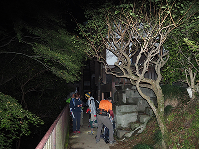 | ここでムササビが出るのを待つ。(Iさん撮影) | 真っ暗な一号路を下る。(Iさん撮影) |