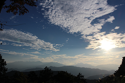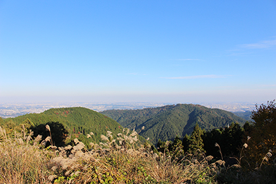 | 城山山頂から見た丹沢の大山 | 都心の方は、抜けるような青空 |